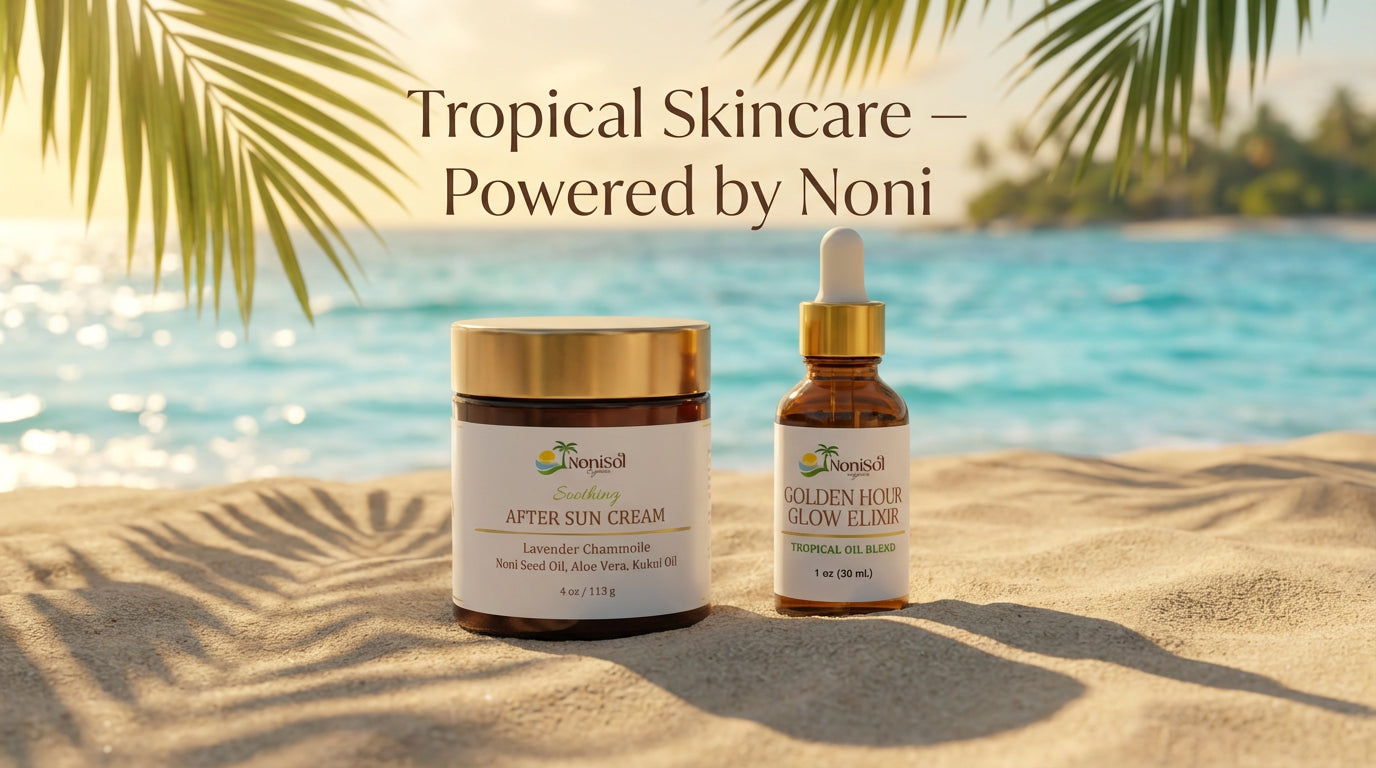 At NoniSol Organics, we create island-inspired after-sun and sun-care skincare made to nourish, soothe, and restore skin exposed to sun, salt air, and heat. Our formulas are powered by sustainably sourced Noni Seed Oil and thoughtfully selected tropical botanicals known for their skin-supporting benefits.